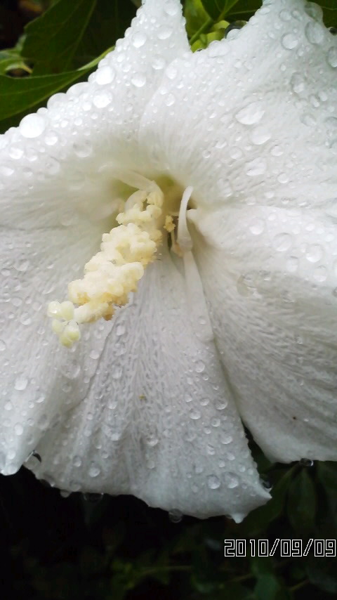 白い木槿(むくげ)の花。