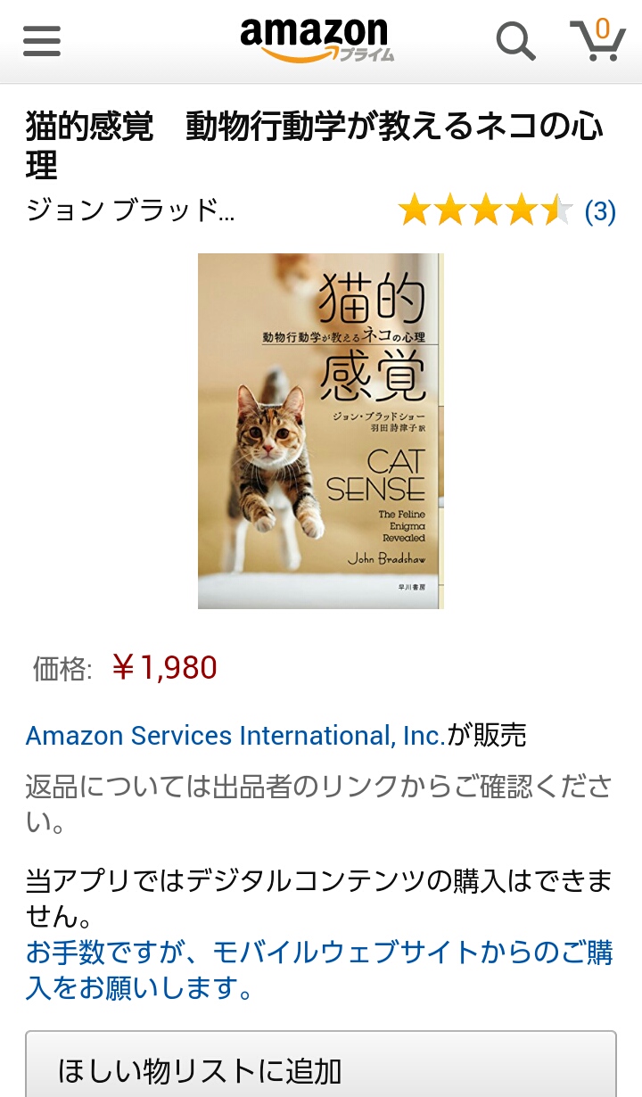 『ネコの感覚』と一応訳しておきますが、カバーしているのは、遺伝学、歴史学、旅行移動論、医学生理学部門などなど、やたら広く、やたら詳しい。当然、大著。せっせと読んでるけど、まだ1/4。先は長い。