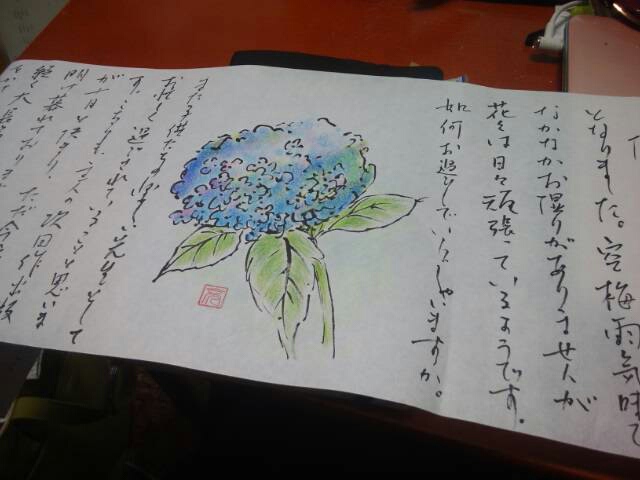 で、ついでに絵手紙にして、