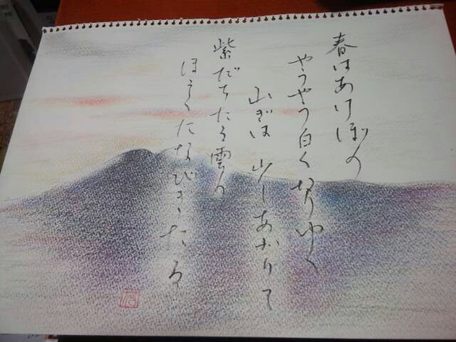 枕草子冒頭を書いて、譜面カバー風にしてみた。