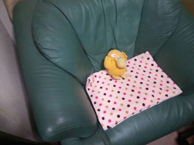 昔作った編みぐるみが鎮座ましまして、勝手に和んでいるような風情。