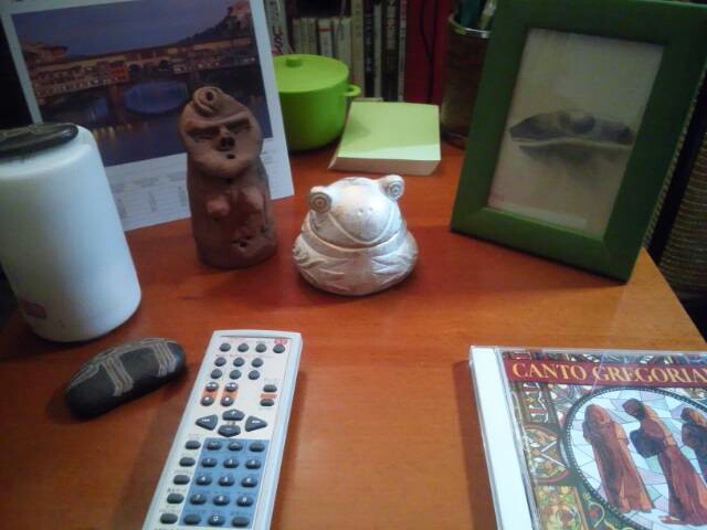 ソファの前のテーブルには、癒し系(なのか?)グッズを並べ、