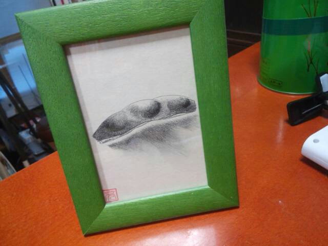 鉛筆画も新しく買ってきた枠に入れてみた。枝豆一丁!