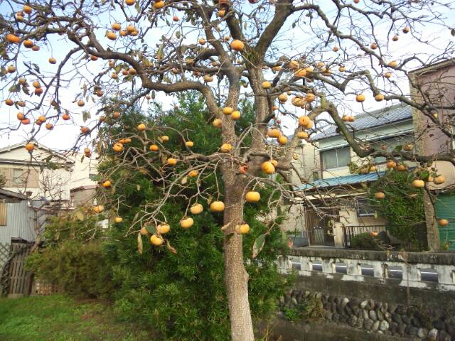 先生のお宅までは、駅から早足であるいて20-25分くらいかかる。今日は枝ぶりのいい柿の木を発見。秋の色だぁ。