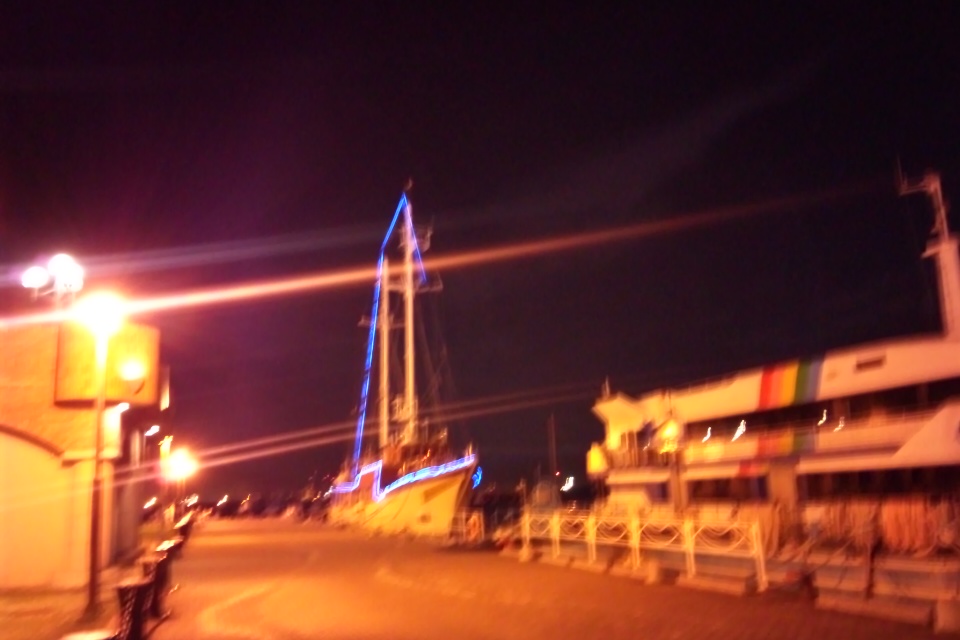 蒼いライトがマストに沿って取り付けられて